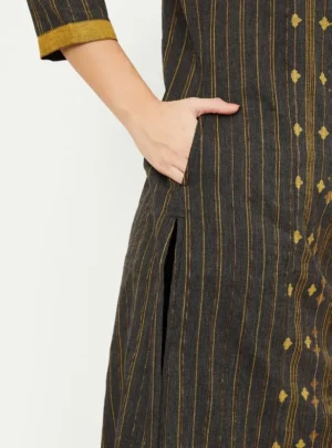 Charcoal Mustard Handloom-Inspired Kurta – Where Tradition Meets Effortless Style