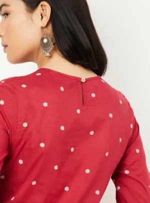Crafted from breathable, soft cotton fabric, the Crimson Blossom Kurta is designed for all-day comfort, especially suited to warmer climates while still layering well under a shawl or dupatta in cooler weather. The fabric’s lightweight nature allows it to drape naturally, adding to its elegant fall.