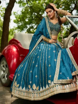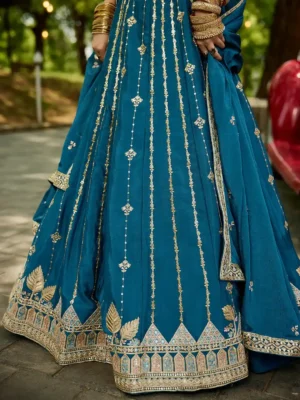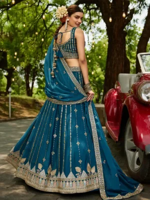 Elegant Teal Blue Embroidered Lehenga Choli Set – Radiate Grace and Grandeur