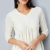 Crafted from breathable fabric, this kurta ensures comfort for all-day wear, making it suitable for both work and casual outings. The straight-cut hemline with side slits enhances ease of movement while allowing for versatile styling — pair it with palazzos for a breezy appeal, churidars for a more fitted traditional look, or even jeans for a casual Indo-fusion vibe.