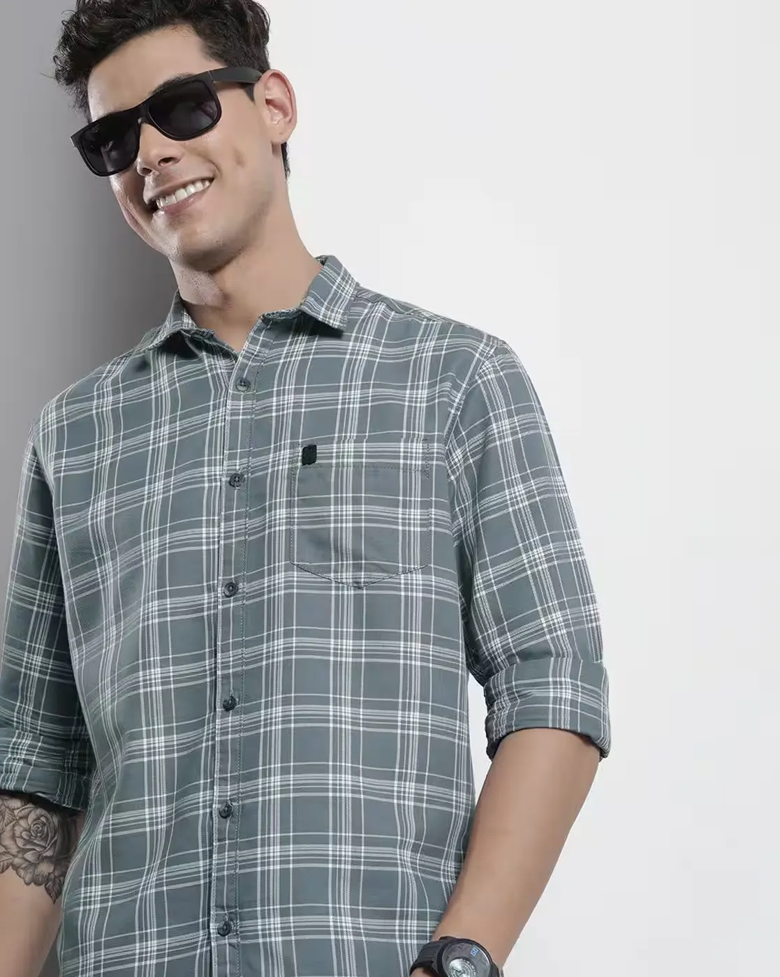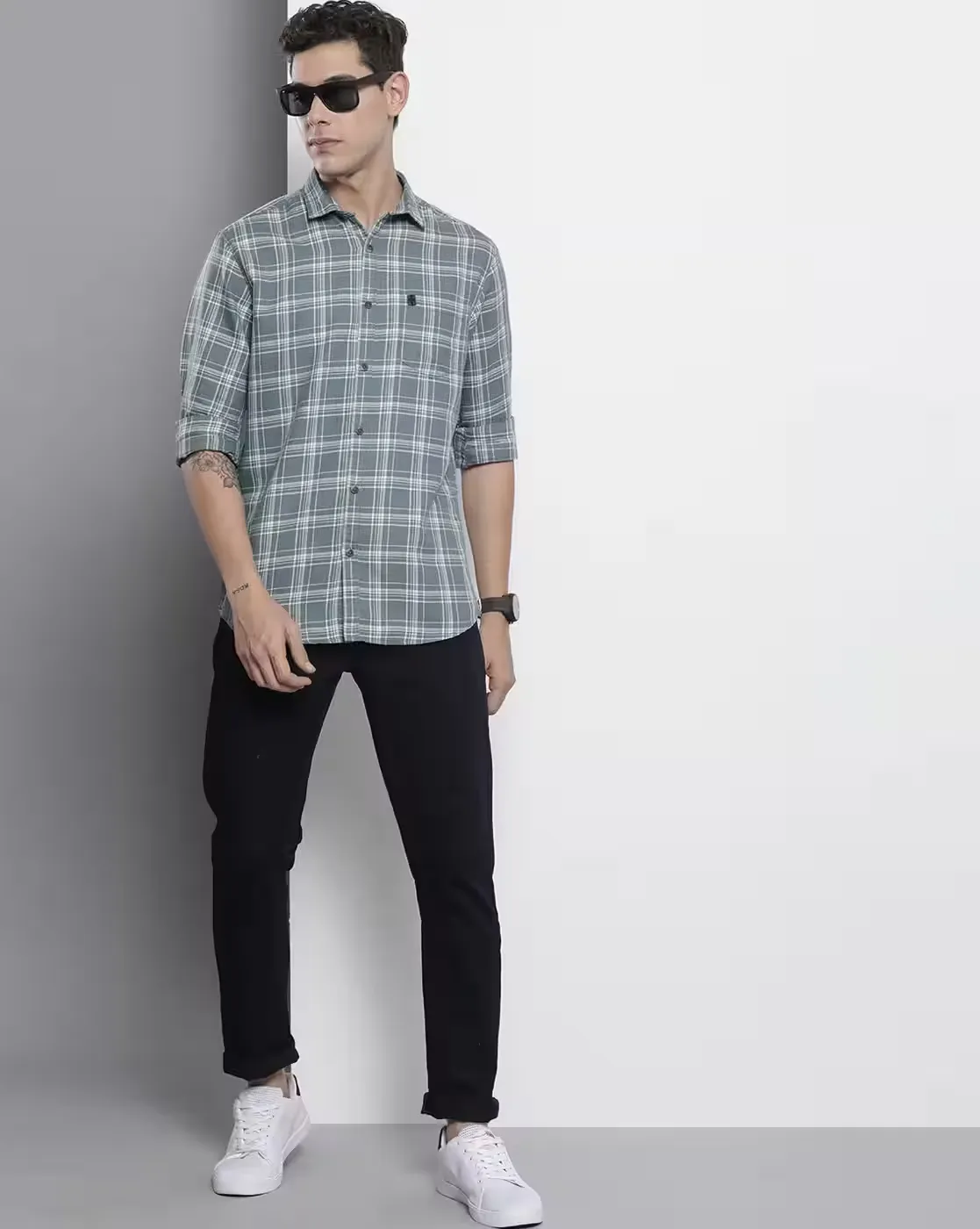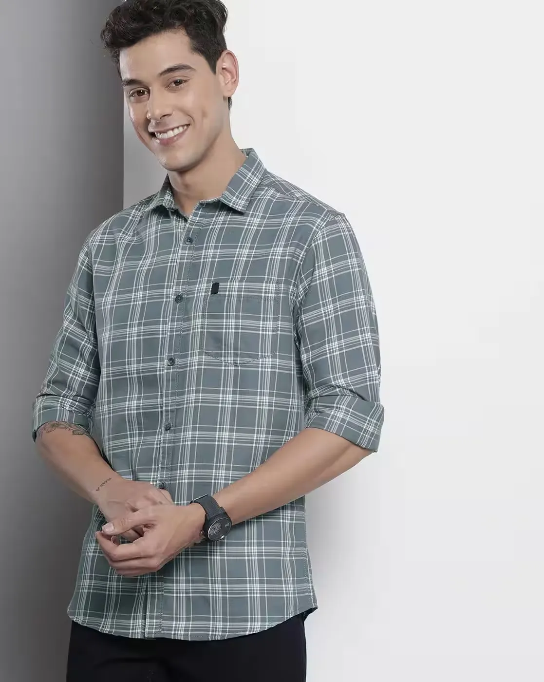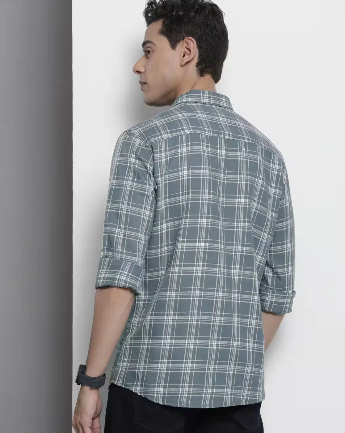 The muted grey base is elevated with crisp white tartan checks, offering a clean, versatile look that pairs seamlessly with everything from dark jeans to khaki chinos. Crafted from soft, breathable cotton blend, it feels as good as it looks—whether you’re running errands, heading for a weekend brunch, or hanging out with friends.