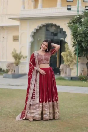 Heavy Sequins & Zari Embroidered Velvet Lehenga Choli