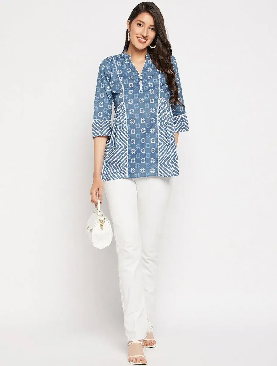 Indigo Bloom Printed Kurti – Elegant. Fresh. Everyday Chic