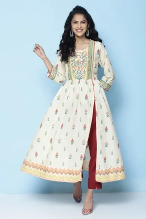 Step into effortless elegance with our Ivory Bloom Front-Slit Kurta, a perfect blend of modern silhouettes and heritage-inspired detailing. Designed for women who value style that works across occasions — much like a versatile, high-performing investment in your fashion portfolio — this kurta is the ultimate fusion of comfort, charm, and timeless appeal.
