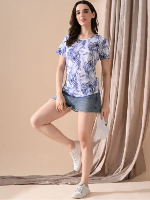 Bring the energy of New York’s fast-paced streets into your wardrobe with this marble-printed casual T-shirt, designed for the woman who blends effortless style with bold decisions — in fashion, finance, and life.