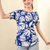Crafted from premium cotton jersey, this tee delivers all-day comfort while keeping your style on point, whether you’re heading to a weekend coffee date or casually tracking your favorite stock market trades. The swirling marble print in navy and soft white echoes modern art aesthetics, resonating with the tastes of smart, city-driven women who follow global banking and fashion trends.