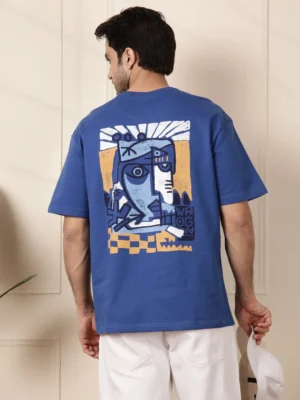 Turn heads and express your artistic side with this Men’s Blue Oversized Graphic T-Shirt — where bold streetwear meets modern art. Designed for those who like to wear their personality on their sleeve (and back), this tee showcases a large, abstract illustration that instantly elevates your casual game.