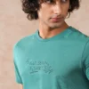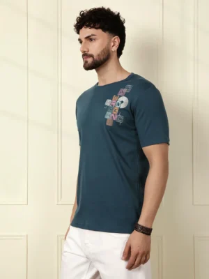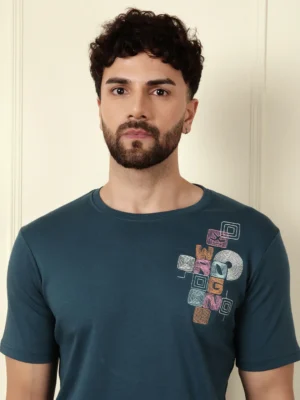 Men’s Blue T-Shirt with Multi-Colored “WRONG” Embroidery