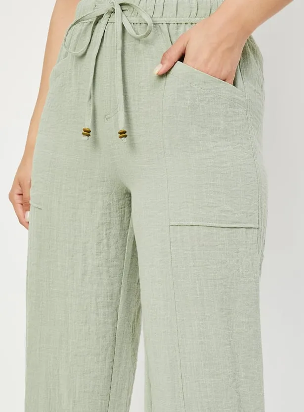 Mint Green Wide-Leg Drawstring Pants – Lightweight Casual Linen Blend Trousers