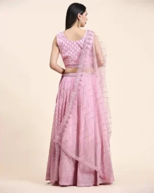 This Pastel Pink Lehenga Choli is a blend of modern elegance and subtle festive sparkle, making it a perfect choice for cocktail parties, sangeet nights, and reception celebrations.