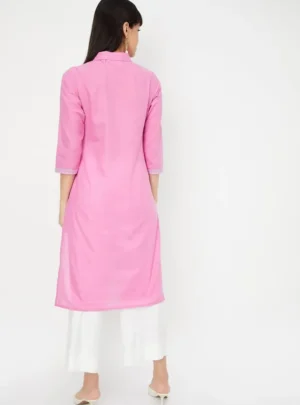 Crafted in breathable, lightweight fabric, the Rose Twilight Striped Kurta ensures you remain cool and at ease all day. Its three-quarter sleeves in solid pink balance the vibrancy of the print, while side slits allow free movement whether you’re walking through a bazaar, hosting friends at home, or attending a casual family gathering.