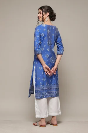 Step into elegance and sophistication with our Royal Blue Bandhani-Inspired Straight Kurta, paired perfectly with crisp white palazzo pants. Designed to blend traditional Indian charm with a modern US-trend silhouette, this outfit is a perfect investment for your ethnic wardrobe – much like a high-value asset in your fashion portfolio.