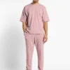 The joggers come with a mid-rise waist and an elasticated waistband for a secure yet comfortable fit. The textured fabric adds a refined touch, making this set equally suitable for a casual coffee run or a stylish weekend getaway. Thoughtful detailing such as stitched center seams on the joggers elevates the overall look while maintaining ease of movement.