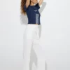 The open polo collar neckline is the defining element of this piece, lending it a polished, preppy edge while keeping the look relaxed. The collar frames the face beautifully, while the absence of buttons keeps the style unfussy and approachable. Short sleeves add to the casual charm, making this t-shirt ideal for warmer weather or for layering under jackets and cardigans.